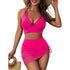 Beach-ready with confidence  in this  tummy control bikini set ! Featuring a  high-waisted bottom  and  supportive top , this  2-piece swimsuit  comes with a  chic mesh sarong wrap  for effortless cover-up style.